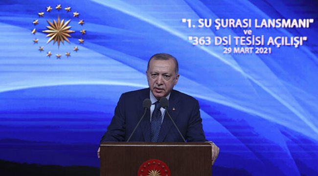 Cumhurbaşkanı Recep Tayyip Erdoğan, "1. Su Şurası Lansmanı ve 363 Tesisin Toplu Açılış Merasimi"ne katıldı. Cumhurbaşkanı Erdoğan'ın açıklamalarından satır başları şu şekilde: "750 MİLYON KİŞİ GÖÇ RİSKİ ALTINDA" Kuraklık gibi nedenlerle su ihtiyacı artarken su kaynakları azalıyor. Nüfusla birlikte artan gıda ve enerji talebiyle iklim değişikliğinin yıkıcı etkileri, gelecekte daha büyük risklerin bizi beklediğini gösteriyor. Bu karamsar tablodan ülkemizin etkilenmemesi elbette mümkün değildir. Bazı araştırmalara göre 2025'e kadar 750 milyon kişi göç riski altında. "SU STRESİ ÇEKEN BİR ÜLKEYİZ" Kişi başına kullanılabilir su miktarı dikkate alındığında su stresi çeken bir ülkeyiz. Elimizdeki sınırlı su kaynaklarını Irak ve Suriye gibi iki komşumuzla paylaşmak mecburiyetindeyiz. Komşularımızla ikili ilişkilerde kaynak paylaşımını, su meselesini tehdit ve pazarlık konusu yapmadık. Bundan sonra da hakkaniyetli bu tavrımızı sürdüreceğiz. "MECLİS'TE BİR SU KANUNU HAZIRLIYORUZ" Suyumuzu korumakla vatanımızı korumak arasında mahiyet itibarıyla hiçbir fark yoktur. 2007'de yaşanan büyük kuraklıktan sonra 81 vilayetimiz için içme suyu eylem planları hazırladık. Meclis'te bir Su Kanunu hazırlıyoruz. "TARIMSAL ÜRETİMDE REKORLAR KIRDIK" Günlük 315 bin metreküp suyu arıtarak, tarımsal sulamada yeniden kullanılabilecek şekilde insanımızın hizmetine sunuyoruz. Geride bıraktığımız dönemde salgın ve meteorolojik kuraklığa rağmen tarımsal üretimde Cumhuriyet tarihinin rekorlarını kırdık. Tarımsal hasılamız bir önceki yıla göre yüzde 20 artarak, 334 milyar liraya yükseldi. Tarımsal hasılada Avrupa'daki liderliğimiz devam ediyor. "BU YIL 24 MİLYAR LİRA TARIMSAL DESTEK SAĞLAYACAĞIZ" Bize "Çiftçilere bakmadınız, onları unuttunuz" diyenlere resmi rakam veriyorum. Bu yıl üreticilerimize toplam 24 milyar lira tarımsal destek sağlayacağız.