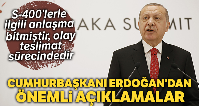 Cumhurbaşkanı Recep Tayyip Erdoğan, S-400 savunma sistemlerinin teslimi konusunda, "Anlaşmamız bitmiştir. Teslimat sürecinde olan bir anlaşmayı inkar etmemiz yakışmaz. Bu iş bitti" dedi. Erdoğan, ABD yaptırımları ile ilgili "Öyle bir görüntü yok. Stratejik ortaklar arasında olmaz diye düşünüyorum" ifadelerini kullandı.