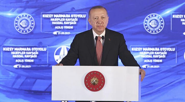 Cumhurbaşkanı Recep Tayyip Erdoğan, Kuzey Marmara Otoyolu'nun 7. Kesimi olan Hasdal-Habipler-Başakşehir etabının açılış töreninde konuştu. Cumhurbaşkanı Erdoğan'ın açıklamalarından satır başları şu şekilde: KUZEY MARMARA OTOYOLU Kuzey Marmara Otoyolu'nun tüm bölümlerini tamamlamış bulunuyoruz. Türkiye'nin hem nüfus yoğunluğu hem üretim ve ticaret kapasitesi hem turizm potansiyeli bakımından en hareketli yerlerinin başında gelen Marmara Bölgemizi çepeçevre otoyolla kuşatmış olacağız. Açılışını yaptığımız kısımlarla birlikte toplam yatırım bedeli 1,7 milyar dolar olan bu kesim, ileride inşası planlanan 3 katlı büyük İstanbul tünelinin de bağlantısını teşkil edecektir. Kuzey Marmara Otoyolu'nun ülkemize vakitten 1 milyar 650 milyon lira ve akaryakıttan 830 milyon lira olmak üzere yıllık 2,6 milyar liraya yakın maddi katkısı, 351 bin ton da karbon emisyon azaltımı faydası olacaktır. KANAL İSTANBUL PROJESİ Yakında ilk köprüsünün temelini atarak fiilen hayata geçirmeye başlayacağımız Kanal İstanbul da inşallah tarihe damgasını vuran bir eser olarak ülkemizin iftihar tablosu içerisindeki yerini alacaktır. Silüeti yavaş yavaş ortaya çıkan 1915 Çanakkale Köprüsü şimdiden gören herkesi kendine hayran bırakmaktadır. "ESER VE HİZMET SİYASETİMİZDEN TAVİZ VERMEDİK" Gezi olaylarıyla başlayan ve 2018 Ağustosu'nda açık bir tehdit halini alan ekonomik saldırılara, yatırımları ve büyümeyi engelleme çabalarına rağmen eser ve hizmet siyasetimizden taviz vermedik. "HİÇBİR İNSANIMIZI YALNIZ BIRAKMADIK" Ülkelerin çoğu sadece finans sektörünü ayakta tutmaya çalışırken, biz 10 milyonlarca insanımızı doğrudan destekleyen programlarla hiçbir insanımızı yalnız bırakmadık. YARGIDA REFORM PAKETİ Yargı reform paketlerimizin dördüncüsünü yakında Meclisimizin takdirine sunuyoruz. Ülkemizin vaktini ve enerjisini içi boş çekişmelerle heba etmeyin. Suni gündemlerin peşinde koşmamızı sağlamak için her yolu denediler. Maziden atiye kurduğumuz köprüyü aşkla şevkle heyecanla geçerek Türkiye'yi hedeflerine ulaştırmakta kararlıyız. İSRAİL'İN FİLİSTİNDE'Kİ SALDIRILARI Bu terör devleti İsrail'in ne olduğunu tüm dünyanın bilmesi lazım. Tüm dünya mazlumları güçlü bir Türkiye'nin ayağa kalktığı, kalkacağı günü bekliyor. Özellikle gençlerimize sesleniyorum. Gençler, bu terör devleti İsrail'i çok iyi tanımanız, çok iyi anlamanız lazım. Dünyanın ve insanlığın şu anda beklediği bu terör devleti İsrail'in ne olduğudur.