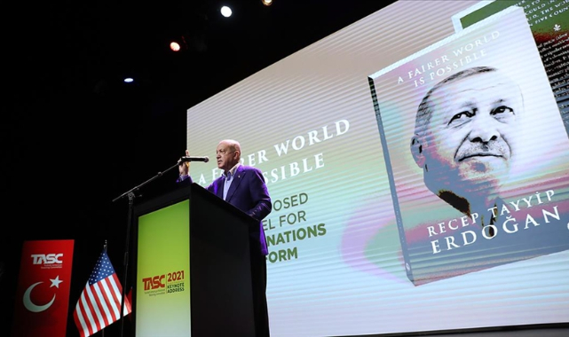 Cumhurbaşkanı Recep Tayyip Erdoğan, New York’ta Türk-Amerikan Ulusal Yönlendirme Komitesi (TASC) tarafından düzenlenen “Daha Adil Bir Dünya Mümkün” başlıklı konferansta konuştu.