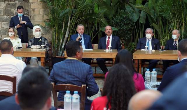 Cumhurbaşkanı Erdoğan, KKTC'ye yönelik resmi ziyareti kapsamında Lefkoşa'daki Büyük Han'da gençlerle bir araya geldi.