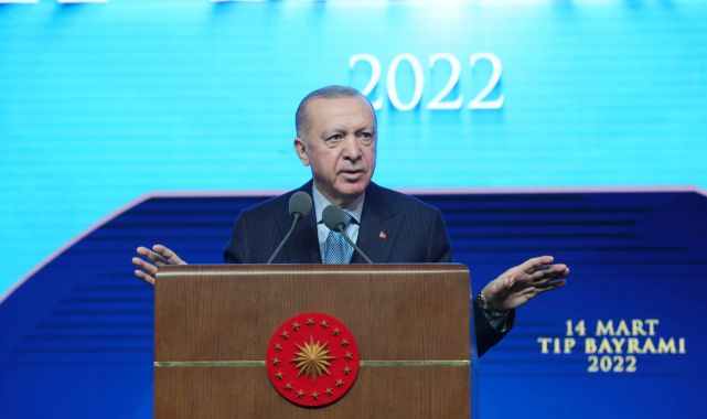 Cumhurbaşkanı Recep Tayyip Erdoğan, Beştepe Millet Kongre ve Kültür Merkezi'nde düzenlenen 14 Mart Tıp Bayramı etkinliğine katıldı. Programa Erdoğan'ın yanı sıra Sağlık Bakanı Fahrettin Koca ve çok sayıda davetli katıldı.Hekimlerin ve çalışanların tıp bayramını tebrik eden Erdoğan, "Salgın döneminde sağlık sistemimizin ayakta tutulması için gece gündüz gayret gösteren hekimlerimiz ile sağlık çalışanlarımızın tamamına şükranlarımı sunuyorum. Yerli aşımızın geliştirilmesi başta olmak üzere ülkemizi uluslararası alanda öne çıkartan, pek çok başarıya imza atan hekimlerimizi, araştırmacılarımızı tebrik ediyorum. Bizim kültürümüzde her işin başı sağlıktır. Öyle ki ülkemizde hekim, doktor, tabip temalı herhalde binlerce temalı türkü, binlerce deyim vardır. Devrinin en büyük fatihi, en kudretli hükümdarı olan Kanuni Sultan Süleyman'ın dünyadaki en büyük mutluluğu 'bir nefes sıhhat' olarak tarif etmesi boşuna değildir" dedi.