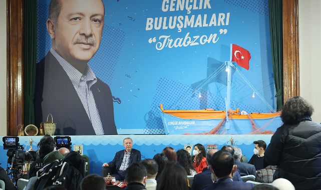 Cumhurbaşkanı Recep Tayyip Erdoğan, "Cumhurbaşkanlığı makamına bırakın benim sahip çıkmamı, 'cumhur' diye ifade ettiğimiz bu millet sahip çıkacaktır." dedi. Cumhurbaşkanı Recep Tayyip Erdoğan'ın, Trabzon'u ziyareti sırasında Akçaabat Halk Kütüphanesinde gençlerle bir araya geldiği programın görüntüleri paylaşıldı.Erdoğan, bir süredir ziyaret ettikleri illerde gençlerle buluşmaya, onların düşüncelerini ve duygularını bizzat kendilerinden dinlemeye gayret gösterdiğini belirterek il ziyaretlerinin en keyifli, coşkuya sevk eden yanının da bu programlarda gençlerle yaptıkları buluşmalar olduğunu söyledi.Milletle ve gençlerle hasbihal ederken sıkça eski Türkiye fotoğraflarını dile getirdiklerini, demokrasi ve kalkınmada hangi kayıpları yaşadıklarını anlattığını dile getiren Erdoğan, "Ardından da ülkemizi 20 yılda nereden nereye getirdiğimizi, rakamlarıyla, örnekleri ile bugün bulunduğumuz yerin önemini göstermeye çalışıyoruz. Çünkü şu anda içinizde biliyorum ki ilk defa bu seçimde oy kullanacak gençlerimiz var, öyle mi? Fakat 18 yıl önce veya 10 yıl önce acaba Trabzon neredeydi, ne oldu? İstanbul neredeydi, ne oldu? Türkiye neredeydi, nereye geldi? Bunları bileceğiz ki oyumuzu kullanırken de buna göre kullanalım ve bunu bilmeden oyu sağlıklı bir şekilde kullanabilir miyiz?" diye konuştu.Görevi devraldıklarındaki Karadeniz Bölgesi'nden ve yaptıkları yatırımlardan örnekler veren Erdoğan, Karadenizlilerin bunları çok iyi bilip tüm arkadaşlarına anlatması gerektiğini dile getirdi.Erdoğan, bazen kendi yakın arkadaşlarından bile "artık eskiyi anlatmasak mı" serzenişlerini duyduğunu belirterek "Halbuki nereden geldiğimizi bilmezsek nerede durduğumuzu fark edemeyiz. Böyle olunca da nereye gideceğimizi de kestiremeyiz." dedi."Milletimiz de yargımız da bu kişinin terbiyesizliğini yanına kar bırakmadı"