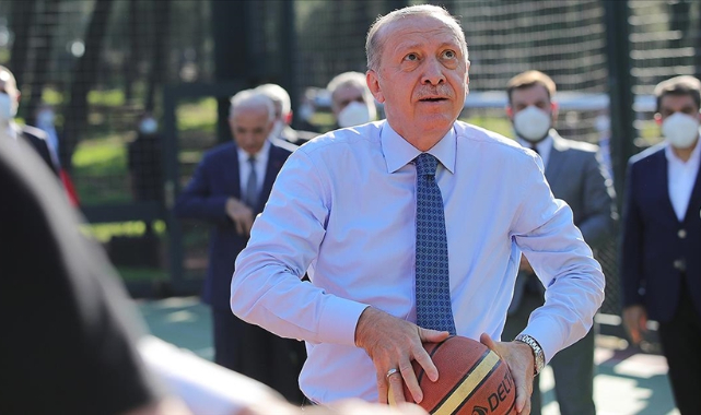 Ziyaretin ardından açılışı yapılacak Ümraniye Millet Bahçesi'ne geçen cumhurbaşkanı Erdoğan, burada basketbol maçı oynayan gençleri görünce yanlarına gitti. Bir süre gençlerle basketbol oynayan Erdoğan'a, Cumhurbaşkanlığı Sözcüsü İbrahim Kalın da eşlik etti.