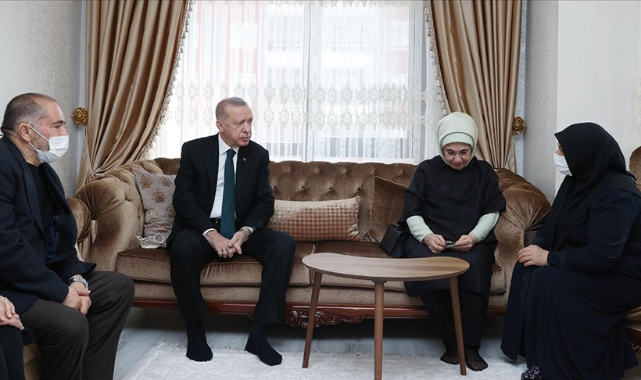 Aile ve Sosyal Hizmetler Bakanı Derya Yanık'ın eşlik ettiği Erdoğan ve eşi Emine Erdoğan, baba Avni Cengiz, anne Beyhan Cengiz ve ailenin yakınlarına başsağlığı ve sabır dileklerini iletti.