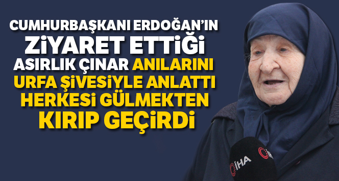 Cumhurbaşkanı Recep Tayyip Erdoğan'ın Şanlıurfa’da evinde ziyaret ettiği 107 yaşındaki asırlık çınar, yaşlılar onuruna düzenlenen yemekte görüşmenin detaylarını anlatınca herkesi gülmekten kırıp geçirdi. Yaşlı kadın, Cumhurbaşkanı Erdoğan’a tavsiyelerde de bulundu.
