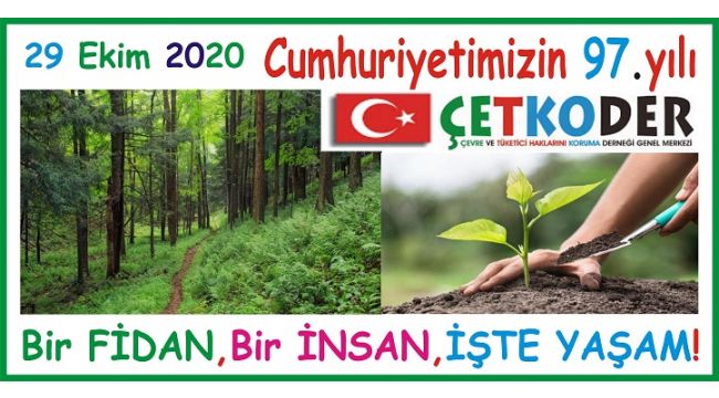 Çevre Ve Tüketici Haklarını Koruma Derneği (ÇETKODER) Genel Başkanı Mustafa Göktaş, "29 Ekim 2020 günü kutlamasını, koronalı şu günlerde, kısıtlamalar da dikkate alınarak, bu şekilde ifa ederken, diğer yandan, Cumhuriyetimizin kurucusu Gazi Mustafa Kemal Atatürk ve silah arkadaşları ile tüm şehitlerimizi, bu vesile ile bir kez daha rahmetle, minnetle anıyoruz.. Bu çalışmada kendi imkânlarımızla yaptırmış olduğumuz afişlerimiz gönüllülerimize ücretsiz dağıtılmıştır. Cumhuriyet fazilettir. Bu günlere gelmek kolay olmamıştır. Bizim bu günlere gelmemizi sağlayan tüm şehitlerimize bir nebze olsun vefamızı göstermek adına bu çalışmayı yapıyoruz. Onları rahmetle, minnetle anarken, Gazi'lerimizi ve yakınlarını saygı ve sevgi ile anıyoruz. Yine aynı şekilde bu güne kadar emeği geçmiş devlet büyüklerimizi, devlet görevlilerimizi saygı ile anıyoruz. Nice 29 Ekim'leri barış içinde, huzur içinde, mutluluk içinde kutlamak nasip olsun. Bu duygu ve düşünceler ile bir kez daha sesleniyorum ki, Cumhuriyeti bize verenlere, bu aziz vatanı bize emanet edenlere saygımız ve sevgimizi göstermek için ve gelecek nesillerimize olan manevi sorumluluğumuzun bir gereği olarak, lütfen bu 29 Ekim'de bir çam – selvi yâda çınar fidesini toprakla buluşturalım. Yaşama, doğaya, çevreye bir nebze olsun katkı sunalım. Çevreyi, doğayı kirletmeyelim. Kirletilmesine engel olalım. Ormanlarımızı, yeşil alanlarımızı, bitki örtümüzü, akarsularımızı, kısacası tabiat anayı koruyalım" dedi.