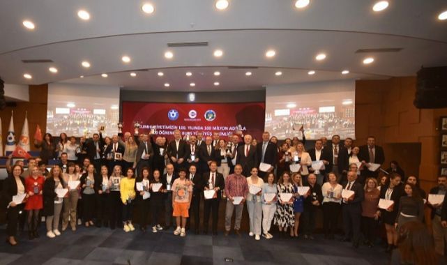 T.C. İzmir Valiliği Cumhuriyetin 100. Yılı Etkinlikleri kapsamında, İzmir Ticaret Odası, Ege Bölgesi Sanayi Odası ve İzmir Ticaret Borsası işbirliğinde düzenlenen “Cumhuriyetimizin 100. Yılında 100 Milyon Adımla 100 Öğrenciye Burs Yürüyüş Etkinliği’nin Ödül Töreni”, İzmir Ticaret Odası (İZTO) Yönetim Kurulu Başkanı Mahmut Özgener, Ege Bölgesi Sanayi Odası (EBSO) Yönetim Kurulu Üyesi Hüseyin Turhan ve İzmir Ticaret Borsası (İTB) Yönetim Kurulu Sayman Üyesi İlhan Zincircioğlu’nun açılış konuşmalarıyla başladı.