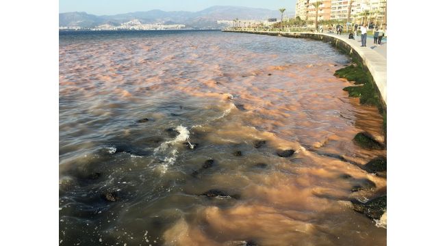 Ana su borusunun patlaması nedeniyle tonlarca su üç saat boyunca İzmir Körfezi’ne doğru aktı. Akan suların taşıdığı çamur nedeniyle denizin rengi değişti.
