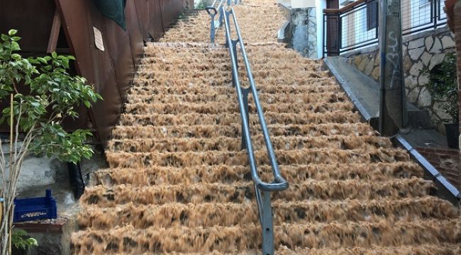 İZMİR (İHA) - İzmir’in Konak ilçesinde, yol yapım çalışması sırasında ana su borusunun patlaması nedeniyle cadde ve sokaklar göle dönerken, akan tonlarca su denizinde rengini değiştirdi.