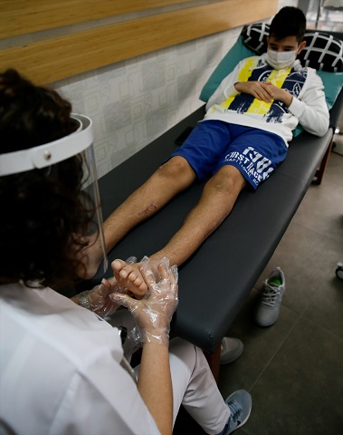 İzmir'de 30 Ekim'de meydana gelen 6,6 büyüklüğündeki depremde enkazdan 10 saat sonra çıkarılan ve bacaklarındaki yaralanmaların ardından uygulanan fizik tedavi sayesinde tek başına yürümeyi başaran 15 yaşındaki Günay Özışık, arkadaşlarıyla yeniden futbol oynamayı iple çekiyor. Depreme Bayraklı ilçesinde 7 katlı Doğanlar Apartmanı'nın 4. katındaki evlerinde kuzeni Ahmet Özışık ile yakalanan Günay Özışık, bacaklarındaki yaralanmalar nedeniyle Ege Üniversitesi Tıp Fakültesi Hastanesinde yaklaşık 2 ay süren tedavi sürecinde 4 ameliyat geçirdi. BORFİZ Fizik Tedavi ve Rehabilitasyon Merkezinde ücretsiz tedavi gören ve geçen ay ilk adımlarını atmaya başlayan Özışık, şimdi de hiç kimsenin desteği olmadan tek başına yürümeye başladı. "İlk günlerde adım atarken heyecanlanıyordum" Günay Özışık, muhabirine, depremin ardından çok zor günler yaşadığını belirtti. Geçirdiği ameliyatların ardından bir daha yürüyememekten çok korktuğunu belirten Özışık, "O dönemler çok umutsuzdum. Ama fizik tedavi almaya başladıktan sonra moralim düzelmeye başladı. Özellikle fizyoterapistim Songül Hanım bana hep 'Tekrar yürüyeceksin.' dedi. Uzun süre yürüyemediğim için ilk günlerde adım atarken heyecanlanıyordum. Artık tek başıma rahat bir şekilde adım atabiliyorum." dedi. Özışık, evde ve sokakta rahat bir şekilde yürüyebildiğini, artık her işini annesine bağımlı kalmadan rahat bir şekilde yaptığını anlattı. Zaman zaman enkazda kaldığı anların aklına geldiğini dile getiren Özışık, şöyle konuştu: "Depremin simgelerinden biri oldum. Artık o kötü günlerin geride kaldığını düşünüyorum. Hayata umutla bakıyorum ve güzel günlerin hayalini kuruyorum. İnsan sağlıklıyken yürümenin kıymetini bilmiyor. Aslında tek başına rahat bir şekilde yürümek bir özgürlük. En çok arkadaşlarımla futbol oynamayı özledim. Fizyoterapistim önümüzdeki aylarda onu da yapabileceğimi söyledi. İnşallah salgın da geçtikten sonra arkadaşlarımla futbol rekabetine başlayacağım." "Günay yürümek için elinden gelini yaptı" Fizyoterapist Songül Yeşilyurt da depremde Günay'ın kurtarılma anını televizyonlardan izlediğini, ameliyatlarının tamamlanmasının ardından onunla bir doktor arkadaşı vasıtasıyla tanıştığını söyledi. Günay'ın yeniden yürümeye olan özleminin kendisini çok etkilediğini vurgulayan Yeşilyurt, şu ifadeleri kullandı: "Uzun süre enkaz altında kaldığı için basıya bağlı bacaklarında sinir yaralanması vardı. Merkezimize tekerlekli sandalye ile geldi. Motivasyonu iyi olduğu için tedavilere kısa sürede yanıt verdi. Ayak bilek ortezi takılı bacakları ve ellerindeki değneklerle sonraki süreçte ilk adımlarını atmaya başladı. Artık öz güvenli bir şekilde kendi başına yürümeye başladı. Artık merdivenleri de rahat bir şekilde çıkıyor. 3 ay içinde çok daha bağımsız olacak, okuluna kendi gitmeye başlayacak, çok sevdiği arkadaşlarıyla futbol oynayacak. Çünkü Günay yürümek için elinden gelini yaptı." "Oğlumun kısa sürede yeniden yürüyeceğine inanamıyordum" Anne Olcan Özışık da oğlunun yeniden tek başına adım attığını gördüğü anları hala unutamadığını söyledi. Hastane sürecinde oğlunun kendisine sürekli, "Anne yeniden yürüyecek miyim?" diye sorduğunu aktaran Özışık, "Fizik tedavi merkezi oğlumun tedavisini ücretsiz üstlendi. Songül Hanım, kendi oğlu gibi ilgilendi. Kısa bir sürede oğlum yeniden yürümeye başladı. Günay'ın kendine olan güveni geldi. Ben oğlumun kısa sürede yeniden yürüyeceğine inanamıyordum. Bir anne olarak çok mutluyum." dedi.