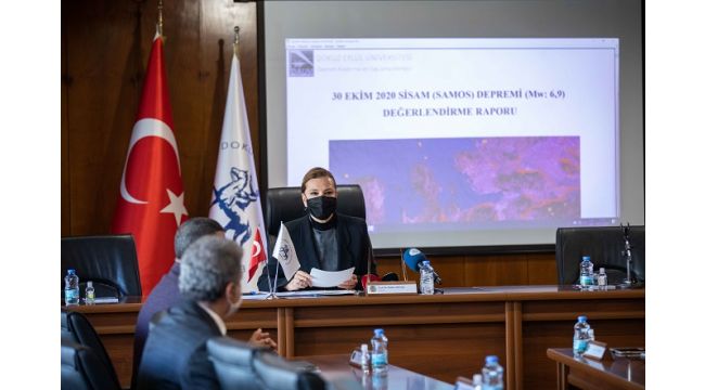 Dokuz Eylül Üniversitesi (DEÜ) Rektörlüğü Senato Salonunda gerçekleştirilen toplantıda, Samos Deprem Ön Raporu bilim insanları tarafından değerlendirildi. İzmir’de yıkıcı etkiye neden olan deprem felaketi ile Türkiye’nin depremselliği ve alınması gereken önlemlerin paylaşıldığı toplantının açılışında konuşan DEÜ Rektörü Prof. Dr. Nükhet Hotar, “İzmir’de can ve mal kaybına neden olan depremin ardından, üniversite olarak yaptığımız çalışmalar hakkında bilgi vermek amacıyla sizlerle bir araya geldik. Öncelikle bu afette hayatını kaybeden vatandaşlarımıza Allah’tan rahmet; yaralılarımıza acil şifa; aziz milletimize de bir kez daha geçmiş olsun dileğinde bulunuyoruz” dedi. Rektör Hotar, “Bilindiği üzere yaşanan afetin yaralarını sarmak için ülkemiz, tek yürek olarak; bütün kurum ve kuruluşlarımızın desteği ile birlikte olağanüstü gayret gösterdi. Bu durum yaşadığımız acı tablo karşısında kısmen de olsa teselli oldu” diye konuştu.