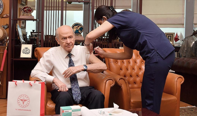 Devlet Bahçeli, aşı yaptırdığı görüntülerin yer aldığı fotoğrafı da paylaştı.