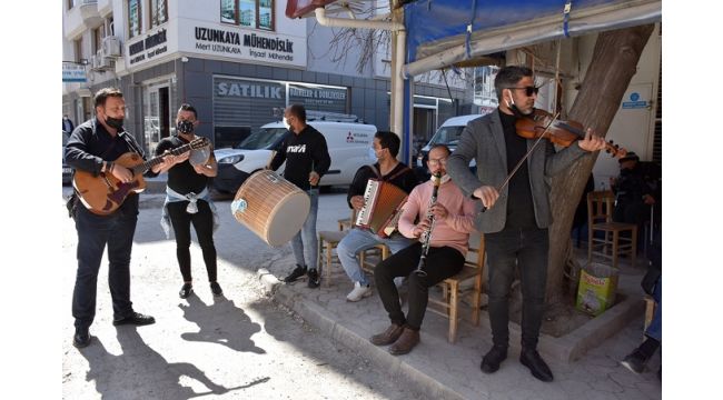 Dikili’de restoran ve kafelerde çalışarak geçimini müzisyenlikle sağlayan hemşehrilerini unutmayan Dikili Belediye Başkanı Başkan Adil Kırgöz, müzisyenlerin salgın döneminde yaşadıkları mağduriyetlerini bir nebze olsun azaltmak amacı ile sokak aralarında mini konserler gerçekleştirdi.