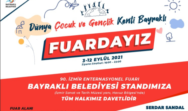 İZFAŞ tarafından İzmir Büyükşehir Belediyesi’nin ev sahipliğinde,03 – 12 EYLÜL 2021 tarihleri arasında, İzmir Uluslararası Fuar Alanı / Kültürpark’ta 90. kez kapılarını açmaya hazırlan fuarda “Dünya Çocuk ve Gençlik Kenti Bayraklı” temasıyla katılacak olan Bayraklı Belediyesi stanttı ilgi uyandıracak etkinlik ve tanıtım faaliyetleriyle ziyaretçilerini ağırlayacak.
