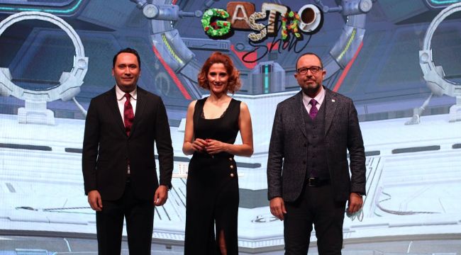 Resimaltı soldan sağa: Turizm Medya Grubu Başkanı Volkan Ataman, Sunucu Başak Koç ve Gastronomi Turizmi Derneği Başkanı Gürkan Boztepe