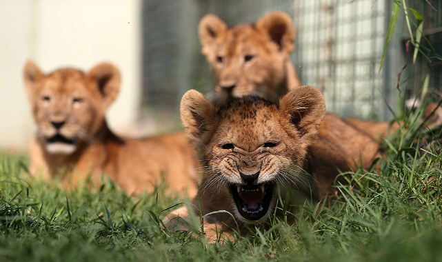 Bursa Hayvanat Bahçesi'nde mayıs ayında dünyaya gelen üç aslan yeni yuvalarına kısa sürede uyum sağladı.