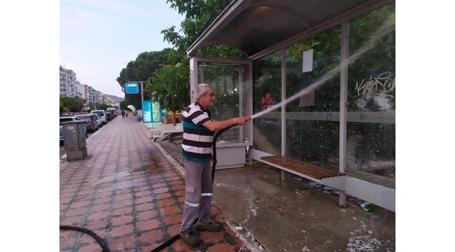 Bergama Belediyesi Koronovirüsle mücadele etmeye başladığı ilk günden bu yana ilçenin en aktif noktalarını rutin olarak temizleyip dezenfekte ediyor. Normalleşme sürecinde rehavete kapılmadan temizlik ve dezenfekte çalışmalarını sürdüren ekipler ilçede bulunan tüm otobüs duraklarını yıkayıp, temizleyerek dezenfekte işlemlerinden geçirmeye devam ediyor. Otobüs duraklarında vatandaşın temas ettiği yerler, camlar ve bekleme alanı en ince ayrıntısına kadar yıkanıyor ve daha sonra dezenfekte faaliyetinden geçiriliyor. Bu işlemler uygulanırken duraklardaki ve çevresindeki yoğunluğa azami ölçüde dikkat ediliyor.