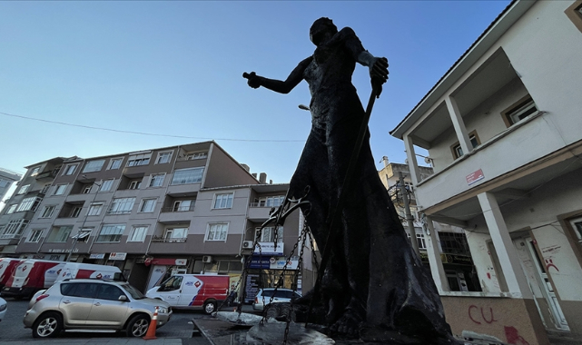 İlçe merkezindeki Adalet Meydanı'nda bulunan anıtın gece saatlerinde yakıldığını görenler, itfaiyeye haber verdi.