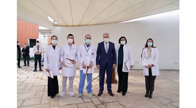 Konuşmanın ardından, Rektör Budak, Dekan Gürgün, Başhekim Ulukaya ile EGESEM Müdürü Karadağ, programı tamamlayan öğretim elemanlarına sertifikalarını takdim etti.