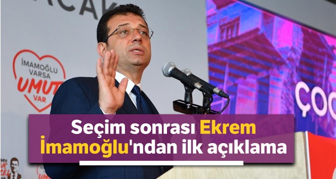 Kesin olmayan sonuçlara göre İstanbul Büyükşehir Belediye Başkanı seçilen CHP adayı Ekrem İmamoğlu, Seçim Koordinasyon Merkezi'nde basın açıklaması düzenledi. Seçim sonuçlarını değerlendiren İmamoğlu, "Ülkemize ve dünya kenti İstanbul'umuza seçim neticeleri hayırlı olsun" ifadelerini kullandı. Türkiye'de 31 Mart akşamı demokrasi saatinin durdurulduğunu söyleyen İmamoğlu, "Saatleri durdurarak zamanın akışını önleyemezsiniz. Gerçekleri de üzerini örterek gizleyemezsiniz. Bugün sandıklardan oy pusulalarının yanı sıra bir de hesap pusulasının çıktığını tüm vatandaşlarıma duyurmak isterim. Vatandaş 31 Mart'tan bu güne ülkeye yaşatılanların, yapılan büyük haksızlığın hesabını bir avuç insana kesmiştir. İstanbul'da herkes için yeni bir sayfa açıldı. Bu yeni sayfada İstanbul'da artık adalet, eşitlik, sevgi, hoşgörü olacak. İsraf, şatafat, kibir ve ötekileştirme bitecek. 16 milyon İstanbullu demokrasiye olan inancımız tazelemiştir. Bunu yalnız bana oy verenler değil, seçimleri olgunluk ve sükunet içinde geçiren tüm vatandaşlarımız sağlamıştır" şeklinde konuştu.