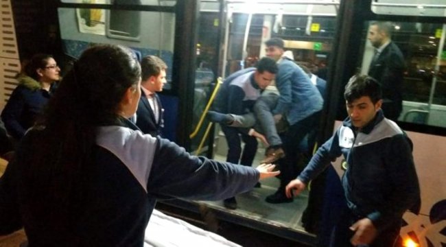 Elazığ'da meydana gelen 6,5 büyüklüğünde depremde yaralananlar oldu. Fethi Sekin Hastanesi'ne belediye otobüsü ile yetiştirilen bir yaralı kameralara böyle yansıdı.