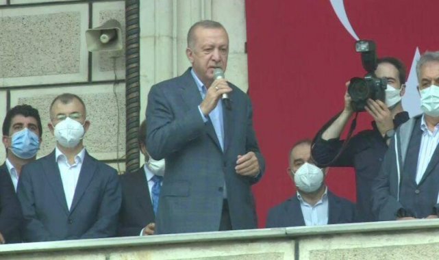 Erdoğan, şiddetli yağış nedeniyle sel meydana gelen Arhavi'de, Yeni Cami'den vatandaşlara hitap etti. Kuzey Kıbrıs Türkiye Cumhuriyeti (KKTC) seyahatinde, Arhavi'de meydana gelen sel felaketini oradan takip ettiğini anımsatan Erdoğan, ilçenin felaket karşısında çok anlamlı bir feraset, anlamlı bir sabır gösterdiğini ve felaketin boyutunun çok ileri derecede olduğunu söyledi. Erdoğan, zarar tespit çalışmasının devam ettiğini belirterek, "Bu zarar tespitleriyle beraber, en kısa zamanda sizlere gerekli olan ödemeleri yapmak suretiyle inşallah bu zarar tespitinden sizleri kurtarmanın gayreti içerisinde olacağız." diye konuştu. Hükûmetin bu tür olaylar karşısında herhangi bir sıkıntısının olmadığına işaret eden Erdoğan, "Biz çok daha büyük felaketlerin altından kalktık. Çok daha büyük felaketleri biliyorsunuz, Elazığ'da ve Van'da buralarla mukayese edilemez. Bu tür felaketleri orada telafi ettik, çözdük, hallettik ve burayı haydi haydi hallederiz. Yeter ki cana gelmesin. Tabii 6 kardeşimiz rahmetli oldu, 2 tane şu anda aranmakta olan kardeşlerimiz var bunları da arama çalışmalarımız devam ediyor. Dua edin, dua edelim inşallah onları da bir an önce bulalım." ifadesini kullandı. Erdoğan, Arhavi'nin duruşunu canıgönülden alkışladığını belirterek, "Az önce İçişleri Bakanım da onu söyledi 'İlk andan itibaren.' dedi 'Arhavi hep böyle dimdik durdu, en ufak bir burada çılgınlık göstermediler.' dediler ki 'sabır' ve siz sabrettiniz. Sizin sabrettiğiniz bu yerde idarecileriniz olarak bize düşen nedir, biz de bu sabreden vatandaşlarımıza karşı ne gerekiyorsa elimizden geleni yapacağız. Konut noktasında sıkıntı varsa ki burada ona benzer önümüze pek ciddi bir fatura çıkmadı. Daha çok nakdi, o da esnaflarımızın sıkıntısı var, esnaflarımızın bu sıkıntılarını inşallah bir an önce gidererek esnaflarımızın tabii ekmek kapısı ve ekmek teknesi. İnşallah onları da bir an önce gidereceğiz. İçişleri Bakanım, AFAD hep birlikte bunu takip ederek ödemleri en kısa zamanda inşallah yaparak sizlere ulaştıracağız." şeklinde konuştu. Felaketin bir imtihan olduğuna dikkati çeken Erdoğan şunları söyledi: "Sabretmek o da ayrı bir imtihandır, Arhavi bunu gösterdi. Şunu bilesiniz ki bu kardeşleriniz de bu tür felaketler karşısında biz pes etmeyiz. İmkanımız var, gücümüz var yani Türkiye eski Türkiye değil. Şu anda güçlü bir Türkiye var ve bu güçlü Türkiye inşallah esnafını darda ve yolda bırakmaz bunu böyle biliniz. Şu anda bakan arkadaşlarım yanımda, milletvekili arkadaşlarım yanımda, Valimiz ve Kaymakamımız, hepsi yanımda. Belediye başkanı hakeza hepsi yanımızda ve hep birlikte inşallah şöyle düze çıkana kadar bu işi halledeceğiz, bu işi bitireceğiz ve böylece de inşallah benim Arhavili kardeşlerim 'Allah devletimizden razı olsun.' diyene kadar." Erdoğan, vatandaşlara teşekkür ettikten sonra hayatını kaybedenlere Allah'tan rahmet dileyerek, "Şu anda aranmakta olan kardeşlerimize de Allah'tan niyazımız odur ki bu iki kardeşimizi de bir an önce bulmak suretiyle en azından ailelerine onlarında huzura kavuştuklarını hep beraber görelim istiyorum." dedi. Cumhurbaşkanı Erdoğan, Artvin'in Arhavi ilçesinde yürütülen çalışmaları helikopterle havadan inceledi ve Arhavi 112 Acil Sağlık Hizmetleri İstasyonu'nu ziyaret etti. Daha sonra selin en çok etkilediği Boğaziçi Mahallesi'ne giden Erdoğan, burada araçtan inerek vatandaşları selamladı, "geçmiş olsun" dileklerini iletti. Arhavi Yeni Cami önünde bekleyen vatandaşlara hitap eden Erdoğan, daha sonra helikopterle ilçeden ayrıldı. Cumhurbaşkanı Erdoğan'ın Arhavi ziyaretine İçişleri Bakanı Süleyman Soylu, Ulaştırma ve Altyapı Bakanı Adil Karaismailoğlu, Tarım ve Orman Bakanı Bekir Pakdemirli, Enerji ve Tabii lar Bakanı Fatih Dönmez, AK Parti Genel Başkan Yardımcısı Hayati Yazıcı, Cumhurbaşkanlığı İletişim Başkanı Fahrettin Altun da eşlik etti.