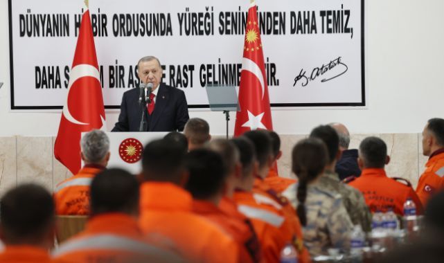 Erdoğan, Sincan'daki Türk Silahlı Kuvvetleri (TSK) İnsani Yardım Tugay Komutanlığı'nda Mehmetçik ile iftarda bir araya geldi. Erdoğan, Komutanlığa gelişinde Milli Savunma Bakanı Hulusi Akar ve Genelkurmay Başkanı Orgeneral Yaşar Güler tarafından karşılandı.Tören mangasını selamlayan Erdoğan, daha sonra "asrın felaketi" olarak nitelendirilen depremlerde birçok insanı enkaz altından kurtaran Türk Silahlı Kuvvetleri İnsani Yardım Tugay Komutanlığının Doğal Afet Arama Kurtarma Taburu ile taburdaki arama kurtarma köpeklerine ilişkin bilgi aldı.Cumhurbaşkanı Erdoğan, burada yaptığı konuşmada, askerlerin ramazan ayını tebrik etti, TSK'nın görevi başındaki tüm mensuplarına başarılar diledi.Allah'tan, askerleri her türlü kazadan, beladan, saldırıdan, ihanetten muhafaza eylemesini dileyen Erdoğan, tarihçilerin Türk milleti için "asker millet" ifadesini kullandığını, milletin her bir ferdinin askerliğin gerektirdiği mücadele ruhuna, disipline, fedakarlığa sahip olduğunu gördüklerini, bildiklerini söyledi.Erdoğan, kısa veya uzun dönem askerlik tornasından geçmeyen hiçbir Türk evladının olmayacağını belirtti.Bugünün teknolojisi ve şartlarının, askerliğin kritik birimlerinin ve işlerinin profesyonel kadrolar eliyle yürütülmesini gerekli kıldığını vurgulayan Erdoğan sözlerini şöyle sürdürdü:"Diğer muvazzaflarla birlikte sözleşmeli ve uzman kadrosundaki Mehmetçiklerimizin ülkemize ve milletimize verdikleri hizmetlerle gurur duyuyoruz. Ordumuz, sınır güvenliğinden terörle mücadele harekatlarına, uluslararası misyonlardan insani yardım faaliyetlerine kadar geniş bir alanda sergilediği başarılarla adeta destan yazıyor. 22 sene önce kurulan İnsani Yardım Tugayı'mız da kendi sorumluluk alanındaki çalışmalarıyla bu destanın önemli bir parçasıdır. Son olarak, 6 Şubat depremlerinde sadece 3 saat içinde felaket bölgesine hareket için hazır hale gelen bu Tugay'ımıza bağlı doğal afetler arama kurtarma taburu onlarca canımızı enkazın altından kurtarmıştır. Ayrıca bölgedeki askeri birliklerle diğer yerlerden görevlendirilen askeri birliklerimizin de deprem çalışmalarına çok önemli katkısı olmuştur. Her ne kadar birileri fitne çıkarmak için sürekli zırvalayıp dursa da biz, askerlerimizin deprem bölgesinde fedakarca yürüttüğü çalışmaları çok iyi biliyoruz."