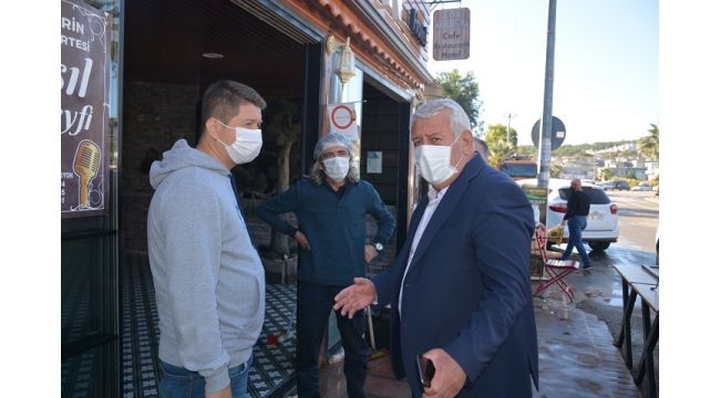 Seferihisar Sığacık Mahallesi’nde bulunan 277 işletmeyi gezen İESOB Başkanı Mutlu’ya Seferihisar Esnaf Odası ve Kefalet Kooperatifi Başkanı Rüştü Çelikgil, Seferihisar Şoförler Odası Başkanı Hasan Fehmi Abacı, Halkbank Genel Müdürlük Daire Başkanı Mahmut Tanrıverdi ile Halkbank Bölge Müdürü Rıfat Ertuğ Koç da eşlik etti.