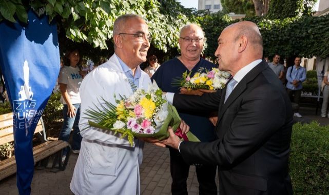 2 buçuk yıl önce pandemiyle birlikte başladığı görevi güneşli bir günde bıraktığını ifade eden Op. Dr. Kadir Devrim Demirel, “Evde bakım birimi, palyatif merkez gibi pek çok hizmeti görevim süresinde kente kazandırdık. İzmirliler evde bakım hizmetlerinden oldukça memnun. Şunu söylemeden de geçemeyeceğim. 40 senedir çeşitli hastanelerde görev yaptım ama bu hastanenin yönetici kadrosu kadar çalışkan ve hevesli bir ekip görmedim. Siz İzmirlilere hizmet vermenin gururunu ve onurunu yaşamak çok güzeldi” diye konuştu.