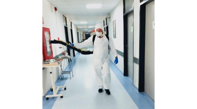 İZMİR(Ege Ajans)- Türkiye genelinde olduğu gibi Ege Üniversitesi Tıp Fakültesi (EÜTF) Hastanesinde de koronavirüs(COVID-19) salgınına karşı alınan tedbirler kapsamında ilaçlama ve dezenfeksiyon işlemi yapılıyor. İzmir başta olmak üzere bölgede küresel salgınla mücadelede önemli rol üstlenen Ege Üniversitesi Tıp Fakültesi Hastanesinde bir yandan hastaların tedavileri tamamlanarak taburcu edilirken diğer yandan da salgına karşı tüm tedbirler ihmal edilmeden sürdürülüyor. İzmir'de vatandaşların yoğun olarak gittiği EÜTF Hastanesinin iç ve dış mekanları dezenfekte edilerek bütün birimlerde ilaçlama çalışması yapılıyor.
