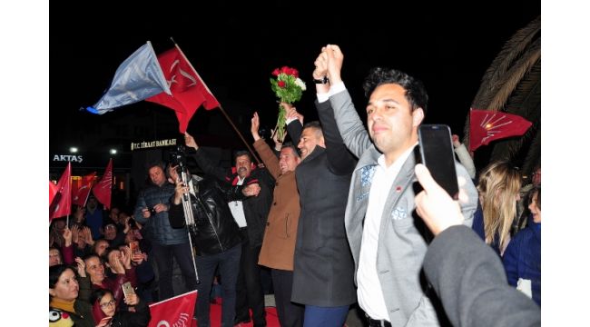 Foça'da seçim sonuçlarının netleşmesi üzerine sokağa dökülen CHP ve İYİ Partililer, Fatih Gürbüz'ün seçim zaferini kutlamak üzere Foça'nın Demokrasi Meydanı'nda toplandı.