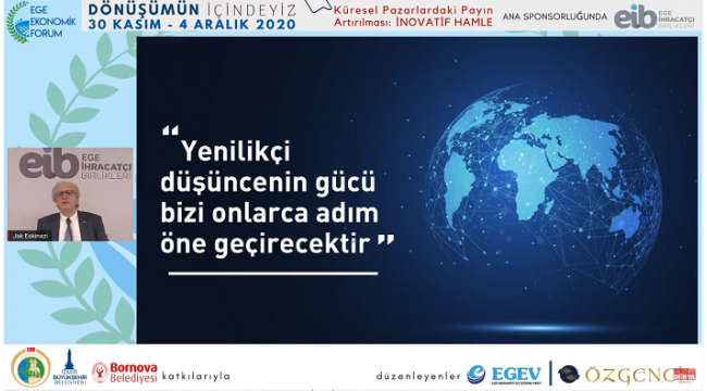 Ege Ekonomik Forumu’nun ikinci gününde Ege İhracatçı Birlikleri ana sponsorluğunda gerçekleşen ‘Küresel Pazarlardaki Payın Artırılması: İnovatif Hamle’ oturumunun açılış konuşmasını Ege İhracatçı Birlikleri Koordinatör Başkanı Jak Eskinazi gerçekleştirdi.