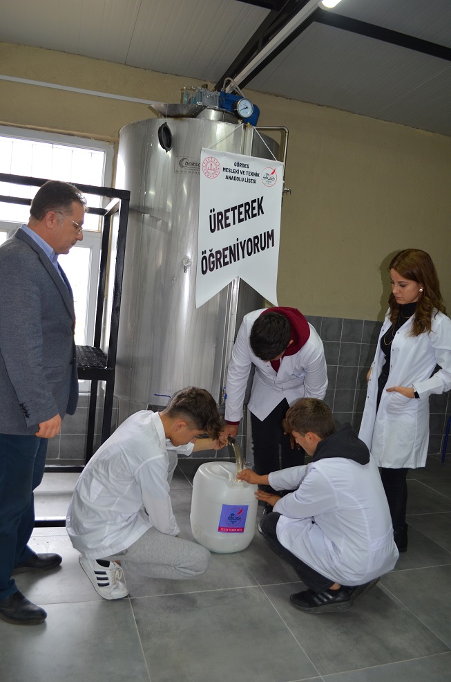 Manisa’nın Gördes ilçesinde bulunan Gördes Mesleki ve Teknik Anadolu lisesinin Kimya Teknoloji Bölümü öğrencileri, Zafer Kalkınma Ajansıyla ortaklaşa yürüttüğü proje kapsamında kentteki kamu kurumları ve okullara sıvı sabun, yüzey temizleyici, kolonya ve nemlendirici krem yaparak ülke ekonomisine katkıda bulunuyorlar.