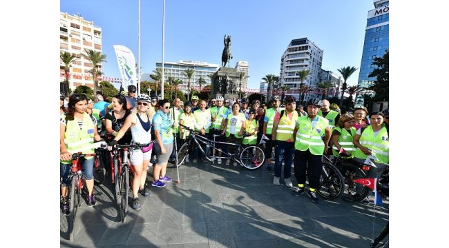 AB Türkiye Delegasyonu Basın Enformasyon ve İletişim Birimi Başkanı Maria Kanellopoulou da bisiklet kortejinde yer aldı. Başkan Tunç Soyer’e teşekkür eden Eşpedal Yönetim Kurulu Başkanı Saldıray Altındağ, Eşpedal’ın engelli bireyler ile engelsiz bireyler arasındaki mesafeleri birlikte pedallayarak aşan bir dernek olduğunu söyledi. Altındağ, etkinliğin, “tandem” olarak adlandırılan ve iki kişinin eşgüdüm içinde bisiklet kullanması amacıyla tasarlanan bu bisikletlerle görme engelli bireylerin bisiklet sürmesi fikrinden ortaya çıktığını anlattı. Altındağ, “Bisiklet kullanım kabiliyeti yüksek ve sorumluluk sahibi bisikletçi dostlarımız ile görme engelli arkadaşlarımızı, derneğimiz bünyesinde bulunan tandem bisikletler üzerinde buluşturarak şehir içi ve şehirlerarası turlar düzenliyoruz. Kamplı turlar gerçekleştirerek doğayı birlikte deneyimliyoruz” şeklinde konuştu. Böyle etkinliklerin kendisini çok mutlu ettiğini belirten Başkan Soyer ise “En kısa zamanda daha geniş kapsamlı bir etkinlik düzenleyeceğiz” dedi.