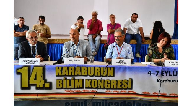 Karaburun Bilim Kongresi'nin son gününde büyük salondaki öğle oturumunda yürütücülüğünü Prof. Dr. Onur Hamzaoğlu'nun yaptığı "Yerel Yönetimler, Kriz ve Çıkışlar" üst başlıklı oturuma, İzmir Büyükşehir Belediye Başkanı Tunç Soyer, Diyarbakır Belediyesi eski Eş Başkanı Adnan Selçuk Mızraklı ve karaburun Belediyesi Başkanı İlkay Girgin Erdoğan katıldı.