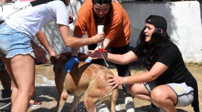 İZMİR'in Kemalpaşa ilçesindeki barınakta toplanan, Hayvanlar İçin Projeler Derneği (HİPDER) üyeleri ve gönüllüleri, hasta ve sahipsiz köpekleri sıcak yaz günlerinde ferahlatmak amacıyla etkinlik düzenledi. 20 kişi, 80 köpeği şampuanla yıkayıp, tüylerini taradı.Kemalpaşa ilçesinde bulunan barınakta toplanan HİPDER üyeleri ve gönüllüleri, hasta, engelli ve sahiplendirilmeyi bekleyen 80 köpek için etkinlik düzenledi. Etkinlikte 20 kişi, köpekleri şampuanlarla yıkayarak, tüylerini taradı. Sıcak yaz günlerinde bunalan köpekler, serinletilirken, gönüllüler de hayvan dostlarıyla birlikte keyifli vakit geçirdi. HİPDER Başkan Yardımcısı İksir Altıok, "Devraldığımız bu çiftlikteki köpeklerin duş almaya, temizlenmeye ve kafalarının okşanmasına ihtiyaçları vardı. Gönüllü arkadaşlarımız köpeklerimizin hepsini yıkıyor, tarıyor, tırnaklarını kesiyor. En azından bu hafta için çocuklarımız rahat olacaklar. Herkes onları yıkarken çok mutlu çünkü hem onlar hem de köpekler eğleniyor. Bu etkinliği her hafta sonu devam ettirmek istiyoruz. Yuvalandıramadığımız birçok çocuğumuz var. Gönüllüleri de çiftliğe davet ediyoruz. Köpek sahiplenmek isteyen kişiler buraya gelip onlarla vakit geçirebilir" dedi. 'YIKANDIKTAN SONRA RAHATLADILAR'Manisa'dan etkinlik için İzmir'e gelen Işılay Türkkan ise "Elimizden geldiği kadar HİPDER'e yardımcı olmaya çalışıyoruz. Buradaki köpek sayısı çok fazla, bizler olmasak çok zorlanacaklar. O yüzden buraya yardıma geldik. Çok güzel bir etkinlik oldu. Onlar da çok mutlu oldular. İlk başta biraz korktular ama yıkandıktan sonra rahatladılar. Çok sıcak ama bulundukları ortam tertemiz, çok iyi durumdalar" diye konuştu.Gönüllülerden Metin Oğul da keyifli vakit geçirdiklerini söyleyerek, "Hayvanları mutlu etmek için buradayız. Hem onları yıkadık hem de aramızda bir nevi köpük partisi yaptık. Sadece buradaki hayvanları değil, nerede görürseniz onları besleyin, koruyun, sahip çıkın. Bir çocuk gibi bir insan gibi muamele yapın onlara. Herkesi buna teşvik ediyorum. Herkes gelsin, yerimiz belli. Kemalpaşa Armutlu Mahallesi'ndeyiz. Köpekleri besleme, bu barınağı temizleme etkinlikleri yapacağız" dedi.