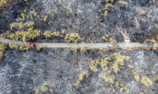 Heybeliada'da 21 Ağustos'ta ormanlık alanda çıkan, karadan ve havadan yapılan müdahalelerle aynı gün söndürülen yangının ardından Orman Genel Müdürlüğü ile itfaiye ekiplerinin tedbir amaçlı bölgedeki bekleyişi sürüyor.Zarar gören alan ile ekiplerin bekleyişi havadan görüntülendi.