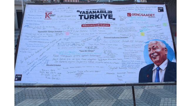 Saadet Partisi İzmir İl Gençlik Kolları, Milli Görüş lideri ve 54. Hükümetin Başbakanı Prof. Dr. Necmettin Erbakan’ın vefatının 10. yıldönümü etkinlikleri kapsamında ‘Fikir Duvarı’ çalışması gerçekleştirdi. Saadet Partili Gençler, ‘Benim İçin Erbakan’ başlığı ile oluşturdukları fikir duvarına İzmirlilerden görüşlerini yazmalarını istedi. Bornova, Buca, Konak ve Menemen ilçelerinde kurulan fikir duvarında birçok vatandaş merhum Erbakan hakkındaki görüş ve düşüncelerini belirtti.