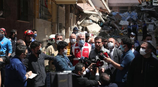 İstanbul İtfaiye Daire Başkanı Remzi Albayrak ve zabıta ekiplerinin eşlik ettiği İmamoğlu, yaptığı açıklamada, "Mahallenin ortasında bulunan ruhsatsız bir yapı, insanlarımızın farkına varmasıyla, can kaybı olmadan süreci atlatmış olduk. Biz de hızlıca çevrenin tetkiki ile ilgili kendi birimlerimize talimat verdik. Yakın çevrede yapı stoğuyla ilgili analizlerimizi yapıyoruz, hızlıca alınması gereken tedbirler var ise valiliğin oluşturduğu kriz merkezinde gündeme taşıyor olacağız” dedi. Ekrem İmamoğlu, “İstanbul’un en kritik meselesi, çare bulmak zorunda olduğumuz en kritik meselesi, bizim tespitlerimize göre şu an öngörülerimize göre 200 bine yakın riskli yapının bir şekilde dönüştürülmesi. Başımıza iş gelmeden umarım bu sorunu bir çözüme kavuştururuz” diye konuştu.
