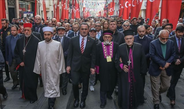 Galatasaray Meydanı'nda toplanan ve aralarında Beyoğlu Belediye Başkanı Haydar Ali Yıldız, Türkiye Musevileri Hahambaşı İsak Haleva, Türkiye Katolik Süryani Patrik Vekili Orhan Çanlı, Süryani Kadim Cemaati Patrik Vekili Yusuf Çetin ve Beyoğlu Müftüsü Mehmet İzci'nin olduğu dini liderler ile 39 ülkenin başkonsolosu patlamanın meydana geldiği alana kadar "İstiklal Bizim" yürüyüşü yaptı.İstiklal Caddesi'nde oluşturulan platformda konuşan Beyoğlu Belediye Başkanı Haydar Ali Yıldız, acı günler yaşandığını belirterek, bu acı günleri paylaşan bütün dini cemaatlerin liderlerine teşekkür etti.