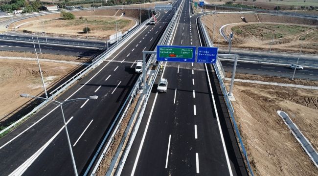 İZMİR (İHA) - İzmir’de yapımı süren Menemen-Aliağa-Çandarlı Otoyolu ve bağlantı yollarının bazı kesimleri 30 Ekim’de trafiğe açılacak. Yap-işlet-devret modeliyle ihale edilen projenin tamamlanmasıyla İzmir Çevre Yolu Ege Üniversitesi Hastanesi kavşağından Çandarlı çıkışına kadar olan mesafe yaklaşık 40 dakikada geçilebilecek.