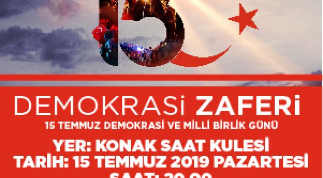 İzmir’de düzenlenecek 15 Temmuz Demokrasi ve Milli Birlik Günü programı netleşti. İzmir Valiliği tarafından düzenlenecek program, saat 20.00’da mehteran takımın İzmir Büyükşehir Belediyesi önünden Konak Meydanı’na yürüyerek giriş yapması ile başlayacak. Ardından 15 Temmuz hain darbe girişimi sırasında şehit olanlar için saygı duruşunda bulunularak İstiklal Marşı okunacak. 20.30’da ise İzmir İl Müftülüğü görevlileri tarafından Kur’an-ı Kerim tilaveti okunacak, ilahı grubu tasavvuf müzik dinletisi sunacak ve dualar edilecek. Saatler 21.15’i gösterdiğinde, darbe girişiminin ilk görüntülerinden oluşan kolaj yayınlanacak. Protokol konuşmaları ise 21.25’te yapılacak. Cumhurbaşkanı Recep Tayyip Erdoğan’ın 15 Temmuz 2016 gecesi yaptığı çağrı, ekranlarda 22.00’da gösterilecek. 22.15’te Dokuz Eylül Üniversitesi Konservatuarı tarafından ‘Kahramanlık Türküleri’ konseri verilecek, ardından Dokuz Eylül Üniversitesi Spor Bilimleri öğrencileri tarafından taekwando ve kule gösterileri ile 15 Temmuz Şehitler Köprüsü model çalışması sunulacak. Programda, Cumhurbaşkanı Recep Tayyip Erdoğan’ın halka hitabı da sinevizyon aracılığı ile canlı verilecek. 23.15’te Gençlik Spor İzmir İl Müdürlüğü tarafından dereceye giren sporculara ödül takdim edilecek. 23.25’te ise Devlet Klasik Türk Müziği Korosu tasavvuf konseri düzenleyecek. Saatler 23.50 olduğunda İzmir Devlet Türk Dünyası Dans ve Müzik Topluluğunun tasavvuf konseri ve zeybek gösterisi sunulacak. 00.13’te tüm camilerde aynı anda sela okunacak, 00.15’te ise mehteran konseri verilecek. Program, sabah namazı ile son bulacak.