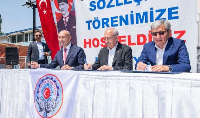 İzmir Büyükşehir Belediyesi ile Türkiye Belediyeler ve Genel Hizmetler Sendikası arasında 5 bin 248 personeli ilgilendiren toplu iş sözleşmesi CHP Genel Başkanı Kemal Kılıçdaroğlu'nun da katıldığı törenle imzalandı. Törende konuşan Başkan Soyer, “Bu dönemde yan yana, tek yürek olarak yol yürüdük, yürümeye de devam edeceğiz” dedi.
