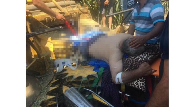 Edinilen bilgiye göre, olay, Torbalı ilçesinde meydana geldi. Özel bir firmaya ait Halil. A idaresindeki biçerdöver, Torbalı Atalan Mahallesi'nde mısır biçimi yapıyordu. Bu sırada makinenin yerden güvenliğini sağlayan operatör yardımcısı Erdoğan K., iddiaya göre o sırada telefonla görüşme yapıyordu. Biçerdöverin üstüne geldiğini fark edemeyen operatör yardımcısı, bir anda makinenin dişlileri arasında sıkıştı. Makine içinde sıkışan yaralıya ilk müdahaleyi tır şoförleri yaptı. Kemerleri ile bacaklarına turnike uygulayan şoförler kan akışını yavaşlattı. Olay yerine gelen 112 ekibi, yaralıya ilk müdahalesini olay yerinde yaptı. Daha sonra ise servis yardımıyla makinenin parçaları sökülerek yaralı sıkıştığı yerden çıkarıldı.