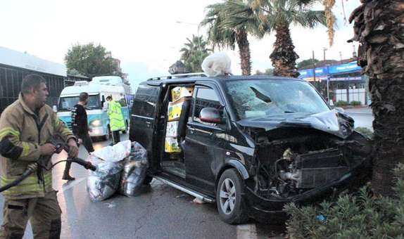 Üç Eylül Mahallesi Ordu Caddesinde A.K’nin kullandığı 35 KDV 60 plakalı minibüs, kontrolden çıkarak ağaca çarptı. Durumun bildirilmesi üzerine olay yerine polis, itfaiye ve sağlık ekipleri sevk edildi. Ödemiş Devlet Hastanesine kaldırılan sürücü A.K. ve 14 yaşındaki A.Y.K hafif yaralanırken B.T’nin hayati tehlikesinin bulunduğu öğrenildi. (AA)