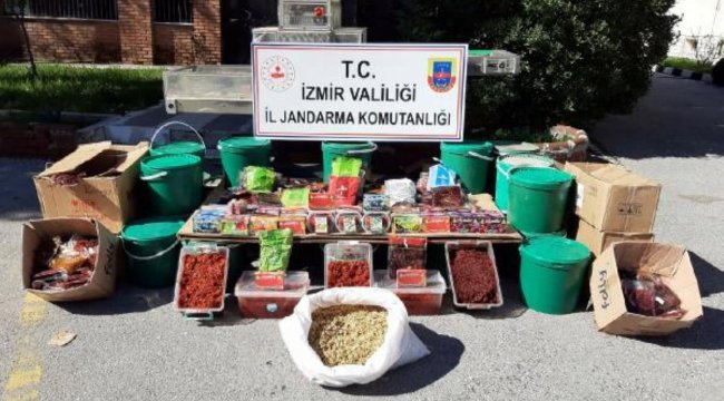 İZMİR'de jandarma ekiplerince düzenlenen operasyonda, 250 bin lira değerinde 550 kilogram nargile tütünü ele geçirildi.