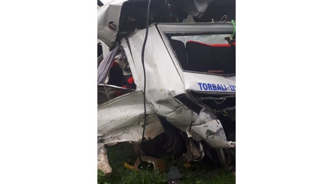 İzmir’in Torbalı ilçesinde meydana gelen, iki tır ile minibüsün karıştığı kazada, 1 kişi hayatını kaybederken, 4 kişi yaralandı.