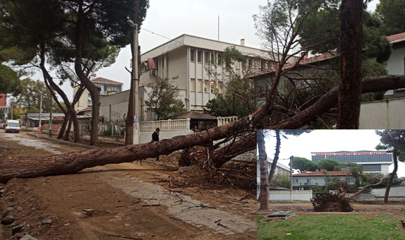 Kiraz Belediye Başkanı Saliha Özçınar, İzmir Büyükşehir Belediyesi ekibinin yol çalışmasının ağaçların köklerine zarar verdiğini ve bunun sonucunda bugün 2 ağacın devrildiğini kaydederek, tepki gösterdi.Yağmurun etkili olduğu Kiraz’daki Gümüşsuyu Caddesi’nde bulunan iki çam ağacı, Kaymakamlık lojmanın bahçesine devrildi. Belediye Başkanı Saliha Özçınar, yaptığı açıklamada, yol çalışması sırasında ağaç köklerinin zarar gördüğünü ileri sürdü. Büyükşehir Belediyesi ekibinin bu konuda uyarıldığını da kaydeden Özçınar, şöyle dedi: “Sorumluluğu İzmir Büyükşehir Belediyesine ait caddede ne yazık ki yol çalışması 1 aydır devam ediyor. Sorumsuz yapılan çalışma sonucu kaç yıllık ağaçlarımızın yol yapımı sırasında tahribata uğradığını, köklerinin zarar gördüğünü ve acilen müdahale edilmesini aksi takdirde devrileceklerini söyledik. Ne yazık ki bugün gerçekleşen yağış ve rüzgar sebebi ile Kiraz İlçe Kaymakamlığı konutuna birden fazla ağaç devrildi. Herhangi bir yaralanma söz konusu değil fakat olsaydı bu hatanın bedelini kim öderdi? Ağaçlara mı üzülelim yoksa önceden uyarılmasına rağmen müdahale edilmemesine mi?” (AA)