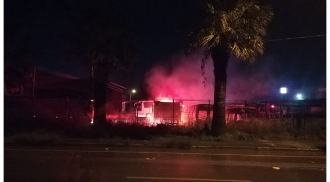 Yangın, gece saatlerinde ilçeye bağlı Aydınlar Caddesi üzerinde bulunan servis bakım alanında meydana geldi. İddiaya göre, servis bakım alanında park halinde bulunan 1 tır, 2 minibüs ve 3 otobüs henüz belirlenemeyen sebepten dolayı alev aldı. Araçların yandığını gören çevredeki vatandaşlar durumu polise ve itfaiye ekiplerine bildirdi. İhbar üzerine olay yerine çok sayıda itfaiye ve polis ekibi sevk edildi. İtfaiye ekiplerinin yoğun uğraşları sonrası alevler 1 saat içerisinde söndürülerek kontrol altına alındı.